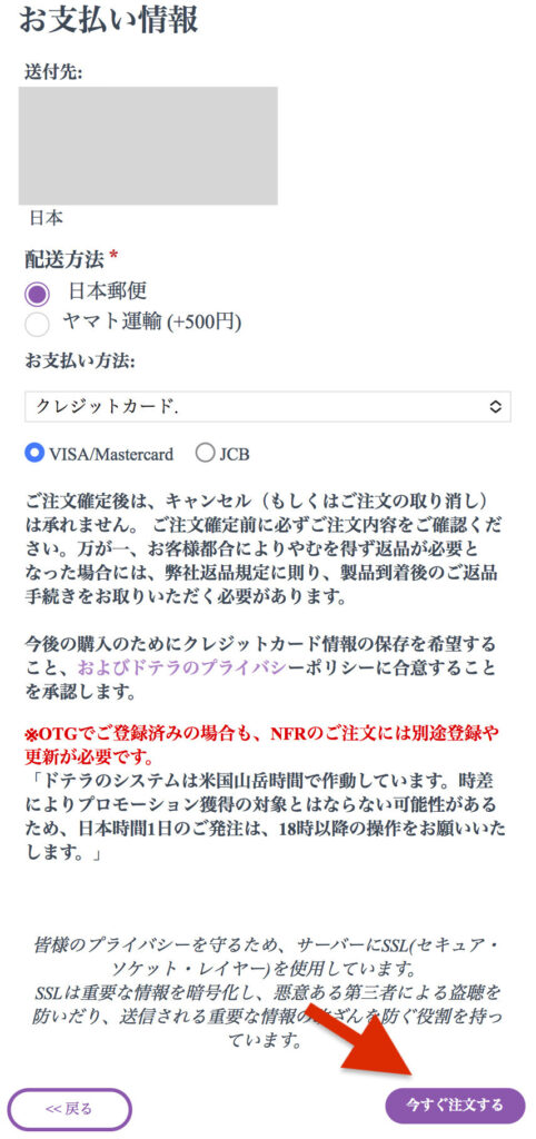 支払い情報を入力し、画面下の【今すぐ注文する】をタップします。